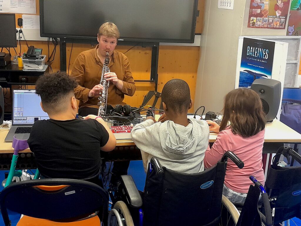 Ce projet de transmission culturelle permet de partager quatre aspects présents dans l’univers de la musique actuelle : l’écoute du son, la transformation du son, l’improvisation musicale et l’enregistrement sonore.