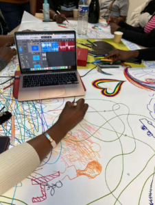 Dans le cadre du projet de territoire En son(s) quartier, la Maison de la Musique Contemporaine invite l’artiste sonore Stefania Becheanu, pour une résidence artistique et citoyenne de trois mois sur le thème de la peur et de la communauté comme espace de solidarité. Plasticienne sonore et performeuse transdisciplinaire, Stefania Becheanu travaille à la fois sur le son, le corps et l’espace. Durant cette résidence intitulée Jépapeur, et inspirée du projet Rencontrer l’ours qu’elle développe actuellement, elle associe les habitants et usagers du quartier pour la création d’une pièce musicale et performative. Au sein de l’hôpital Bichat, Stefania Becheanu réalise une série d’ateliers pour les patientes du dispositif « Parcours » du service des maladies infectieuses et tropicales en explorant l’émotion qu’est la peur à travers la création sonore. Un thème qui fait particulièrement sens pour ces jeunes femmes aux parcours migratoires difficiles. La création collective est nourrie de leur témoignage notamment appuyé par un travail de vocalisation en chorale, d’une recherche sonore onirique et dépaysante. Une journée de restitution se solde par un goûter au sein de la MMC, réunissant patients, soignants et les équipes de Tournesol et de la MMC.
