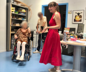 Jodie Ruth-Forest propose aux patients hospitalisés de vivre une expérience de pratique théâtrale, alliant le travail sur les sensations, l’exploration des émotions, les jeux verbaux, l’improvisation et l’expression corporelle.