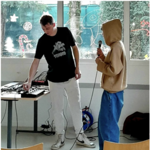 C’est à travers les cultures urbaines que ce duo d’intervenants aborde la création musicale et littéraire, en travaillant sur les matières sonores du slam et du rap.